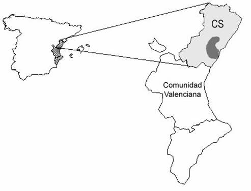El área estudiada se centra en la parte media de la provincia de Castellón, correspondiente a 15 municipios y 4 pedanías de dicha provincia y que abarca una extensión de 723.850 km. (Mapa 1).