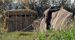 Adem�s, hay otro tipo de caza de migrantes, consistente en la colocaci�n de varetas impregnadas de liga en las balsas donde beben y descansan las aves en sus movimientos migratorios.
